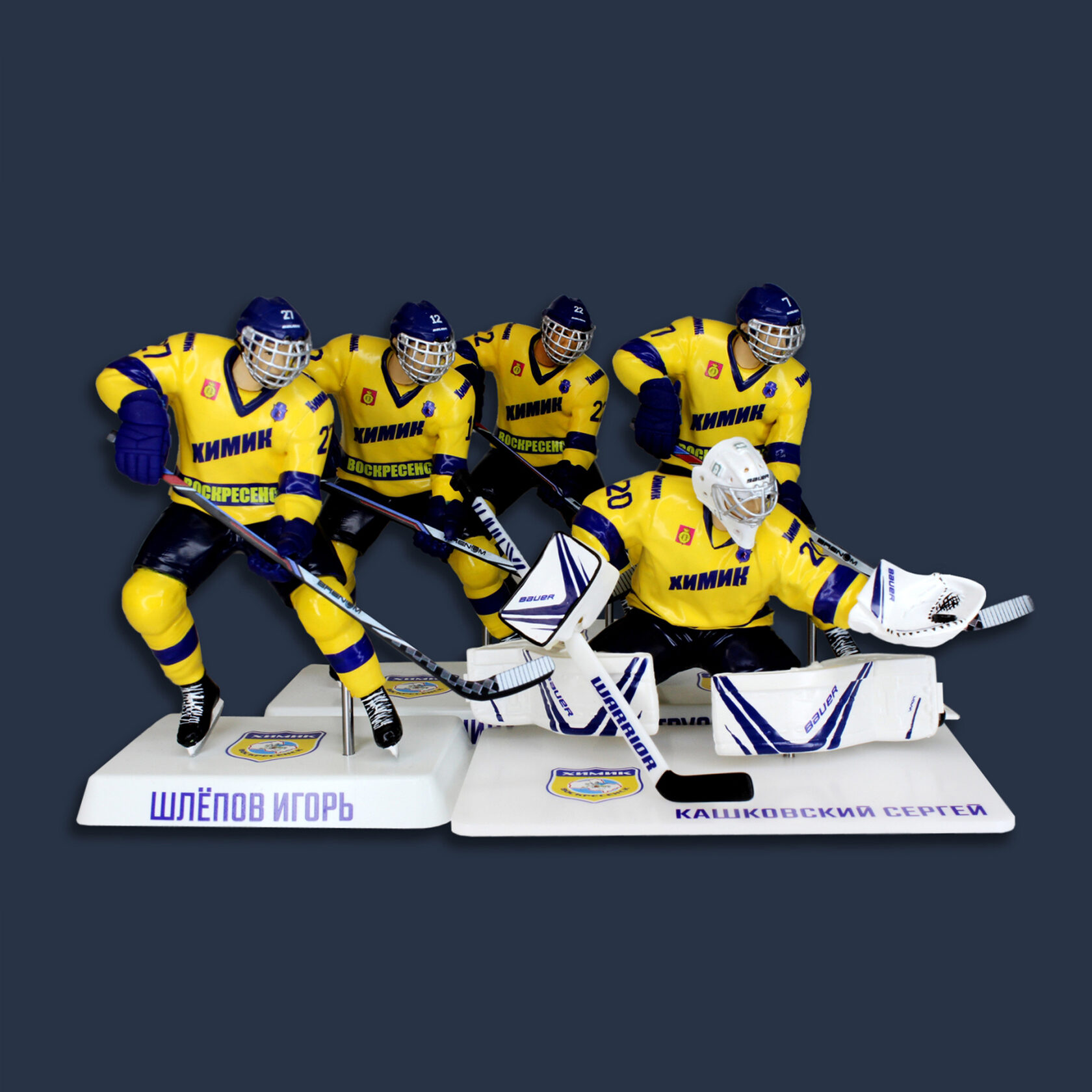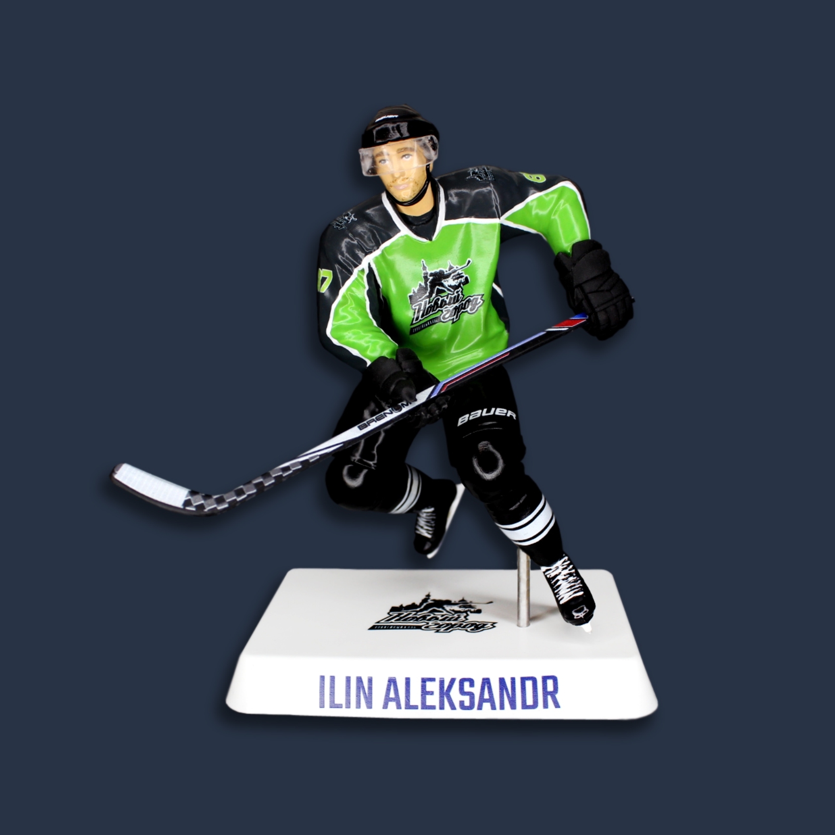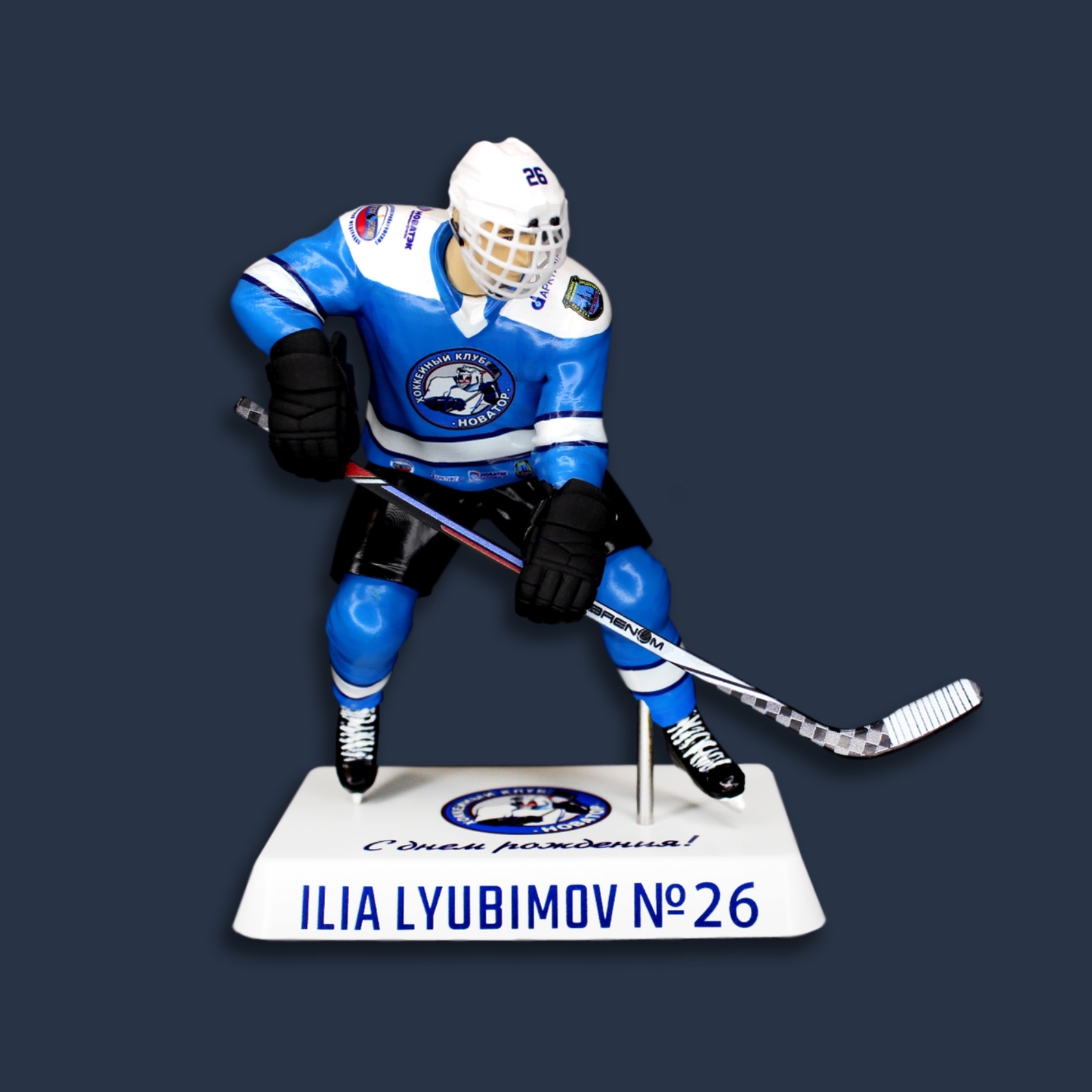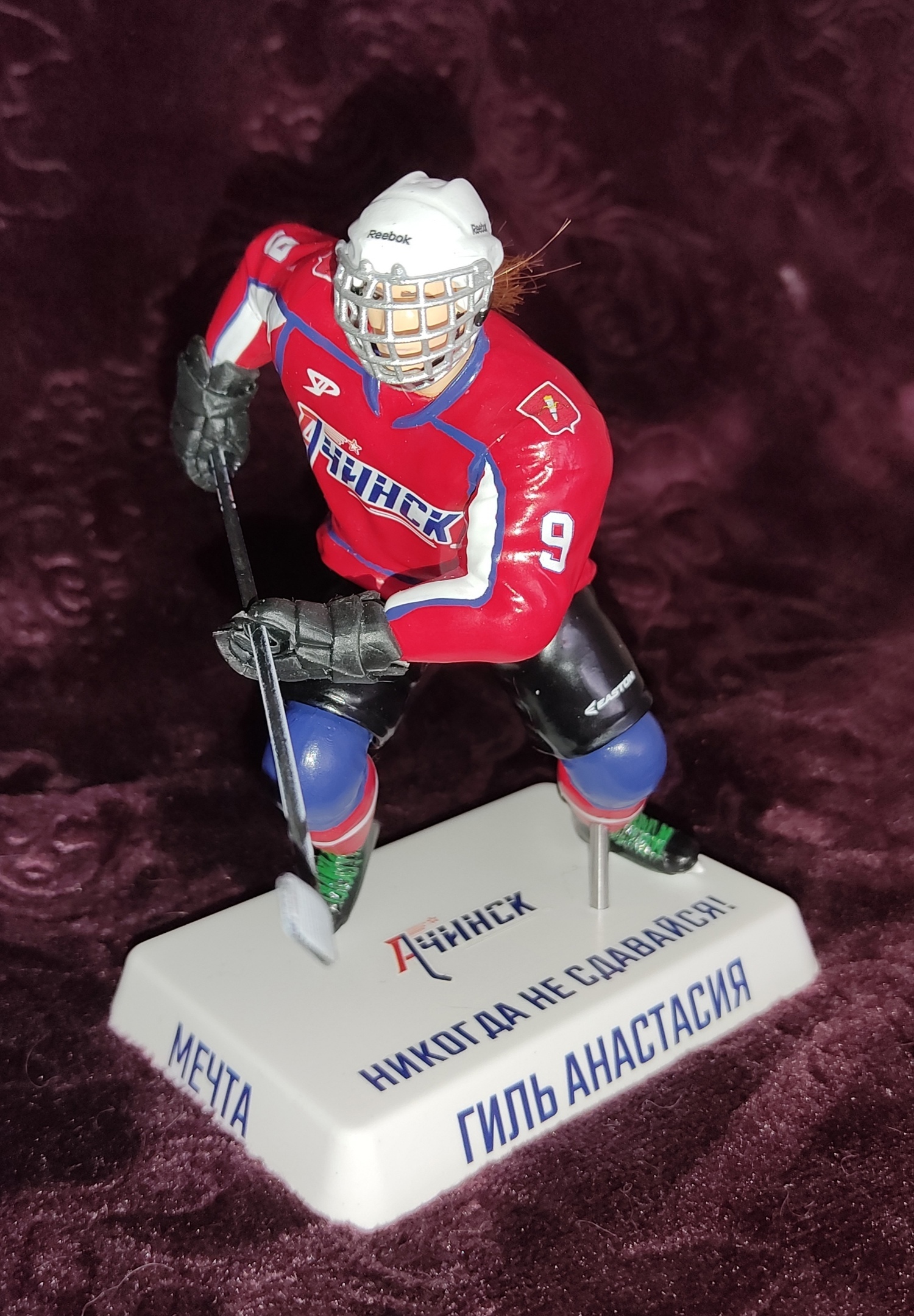 Статуэтка вратяря изготавливается из ударопрочного пластика под заказ, с нанесением логотипа, расцветки вашей команды и вашей фамилии, чтобы максимально приблизиться к оригинальному виду игрока. Ручная сборка и покраска.