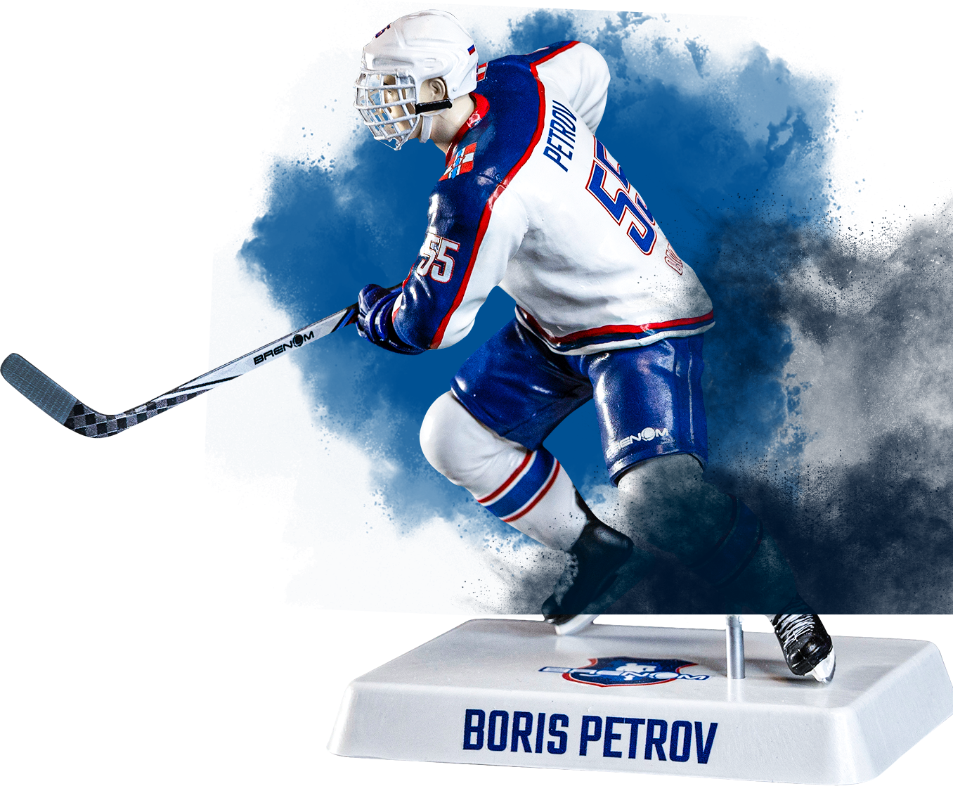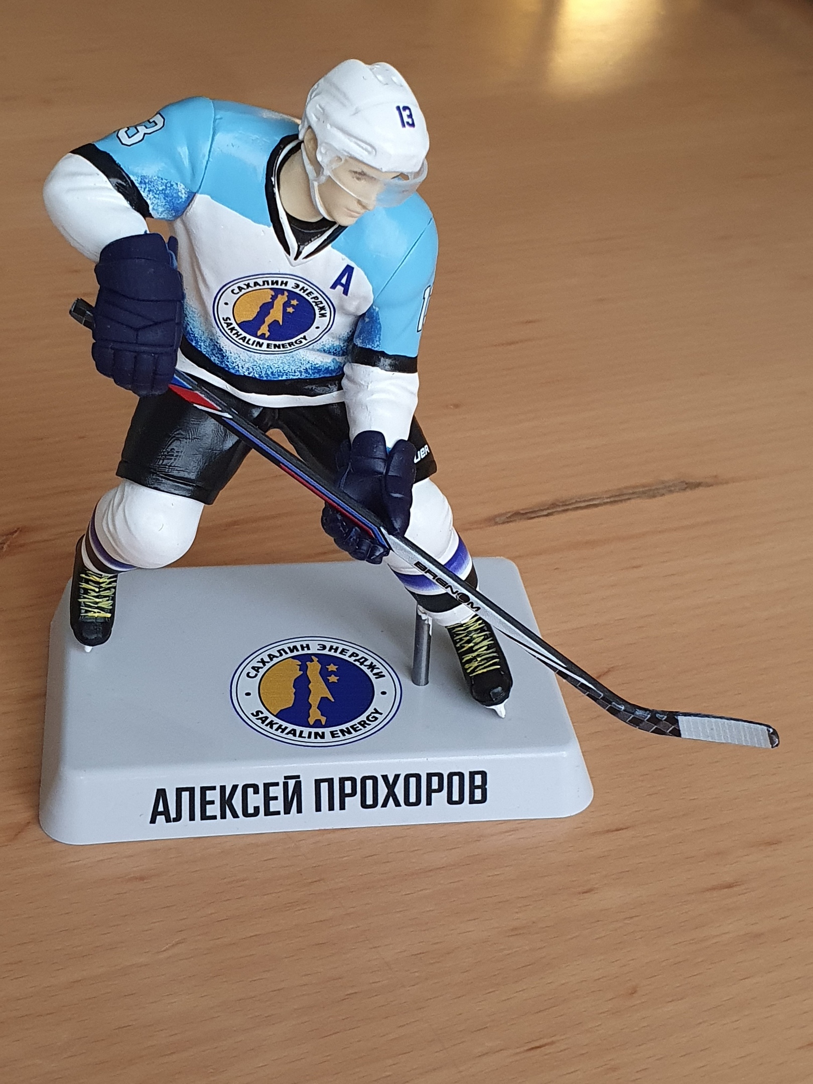 Размер фигурки: 14 см в ширину Варианты: вратарь или полевой игрок Хват клюшки: левый или правый Материал изготовления: полиуретановый пластик. Расцветка: по вашему желанию. Срок изготовления: 3-5 рабочих дней после внесения предоплаты 50% Роспись шлема от 200 рублей